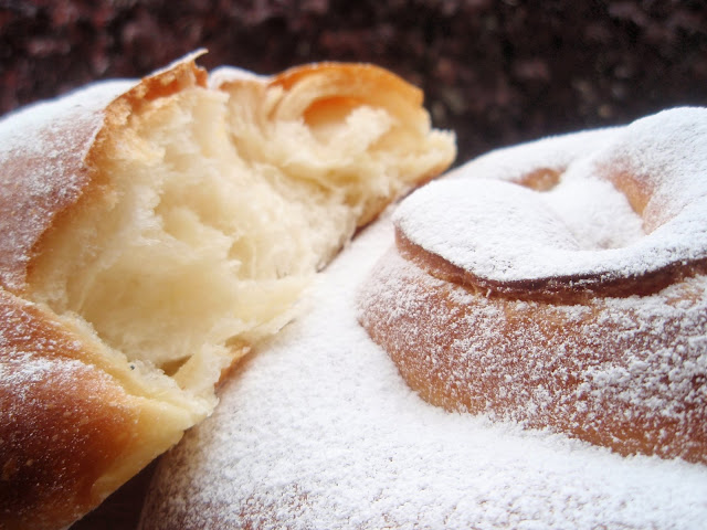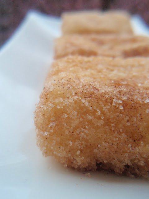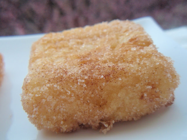 Dejar en papel para que absorba el exceso de aceite y rebozar en azúcar mezclada con canela. Se toma tanto templado como frió y mucho mejor de un día para otro